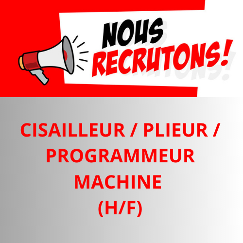Afin de compléter notre équipe, nous recherchons un cisailleur / plieur / programmeur machine dont les tâches seront principalement :