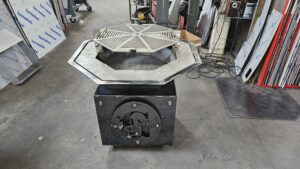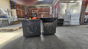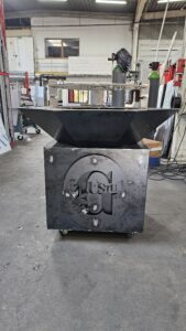 Brasero personnalisé avec son meuble de rangement pour un de nos clients en Corse